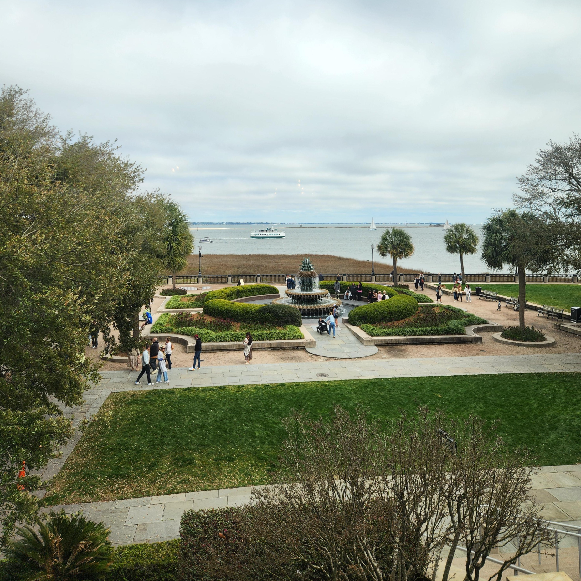 Waterfront Park의 상징이자 사진 명소로, 파인애플은 남부에서 환영과 환대의 의미를 가진 전통적인 상징입니다. - 산책과 휴식 공간
