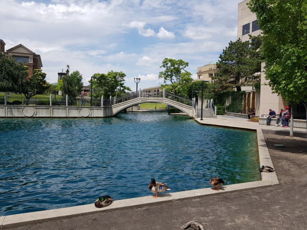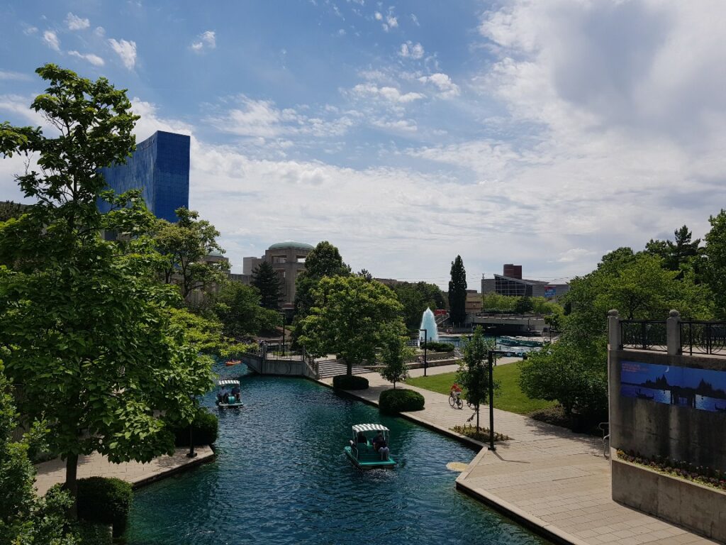 Central Canal은 인디애나폴리스의 도심 지역을 아름답게 가로지르며 휴식과 레저 활동의 장소로 활용되고 있습니다.